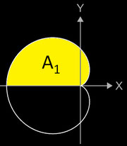 Ist r = f (φ) die Kurve einer Funktion in Polarkoordinaten, dann gilt für die Fläche A unter der Kurve und zwischen den beiden Radiusvektoren φ0 und φ1 ( φ0 < φ1 ) [2]:
